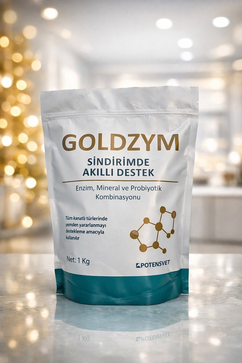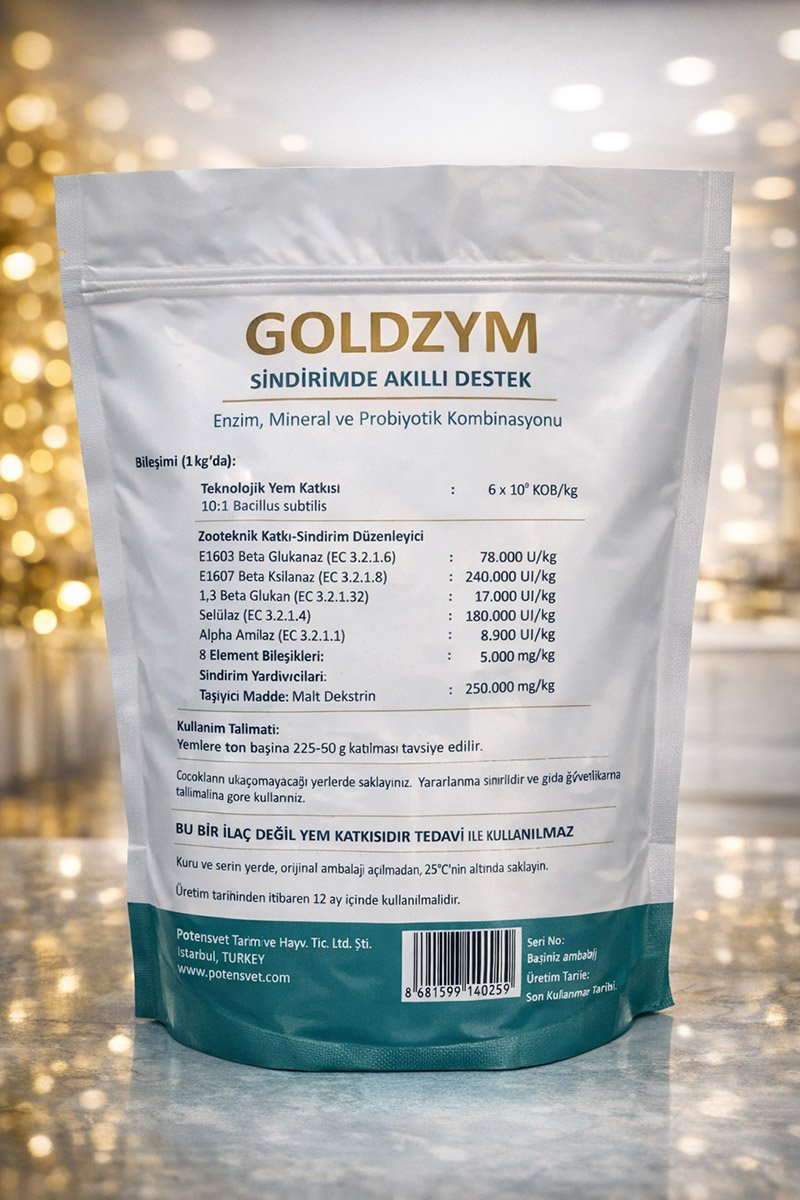 GOLDZYM; kanatlı ve ruminant hayvanlarda sindirim verimliliğini artırmak, yemden maksimum fayda sağlamak ve bağırsak sağlığını desteklemek amacıyla özel olarak formüle edilmiş enzim–mineral–probiyotik kombinasyonudur.