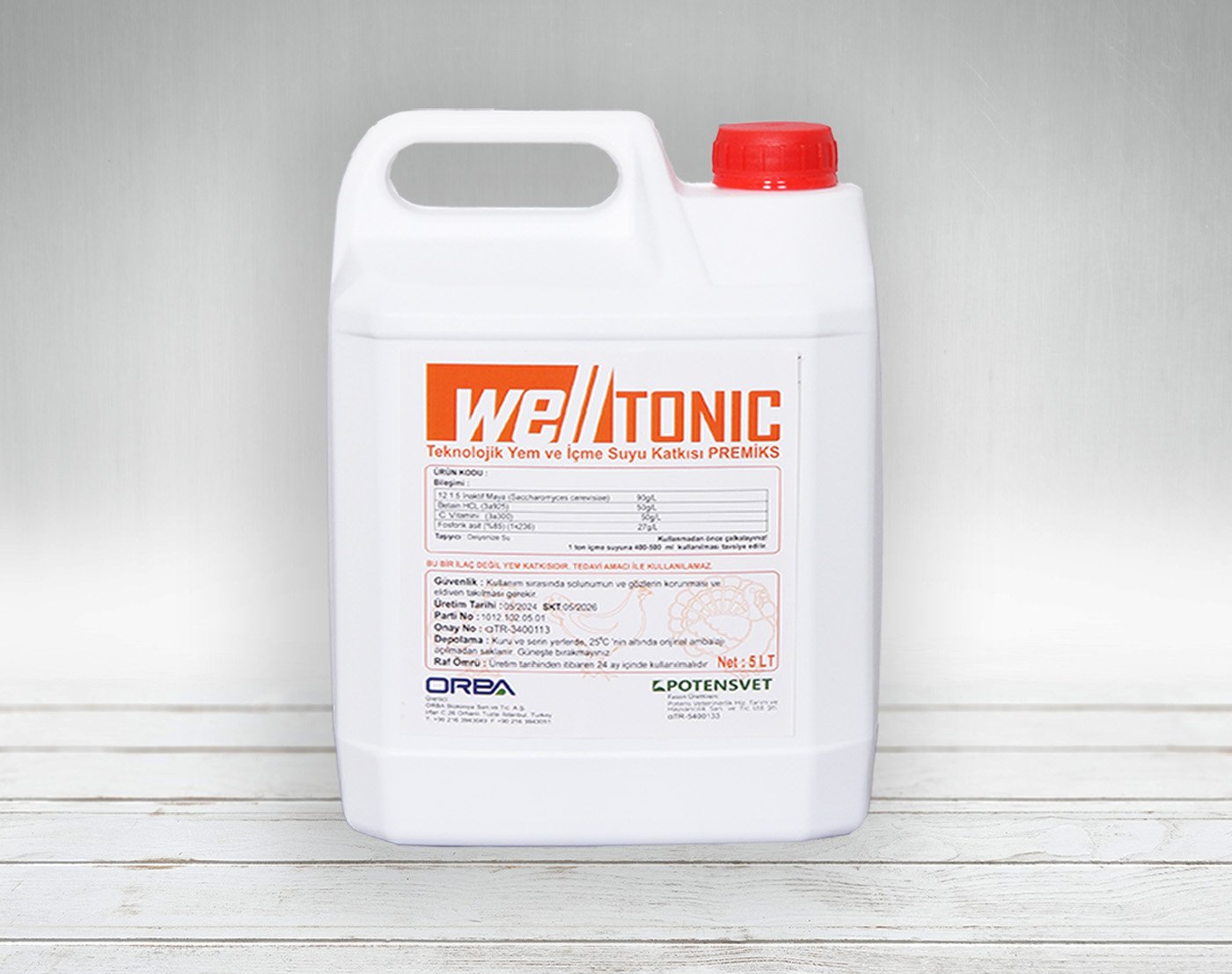 Well Tonic Hidrolize inaktif maya, Betain, Fosforik asit, CVitamini içeren sıvı bir premikstir. Well Tonic çoklu etkisi olan bir içme suyu katkısıdır: Fosforik asit iskelet gelişimi ve enerji metabolizmasında etkilidir, hidrolize mayada ortaya çıkan Beta Glukan bağışıklık sistemini tetikler, hidrolize maya hücre duvarı mikotoksinleri tutuklar, Betain karaciğer işlevini iyileştirir. CVitamini güçlü bir anti oksidandır.